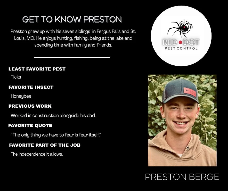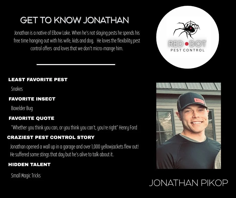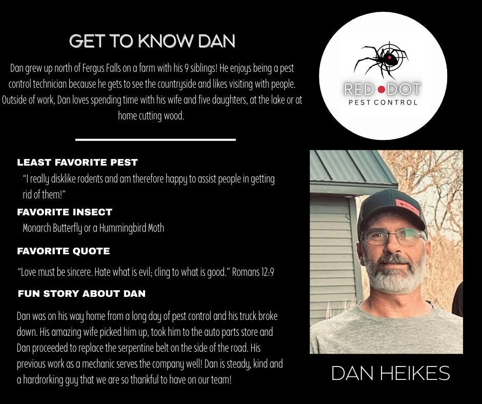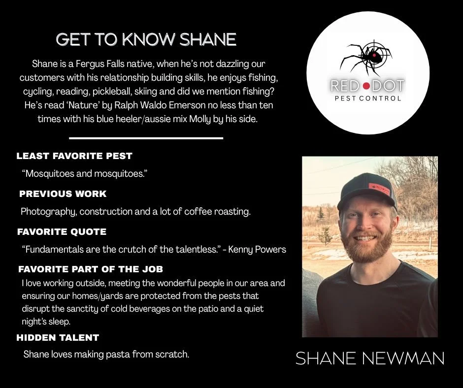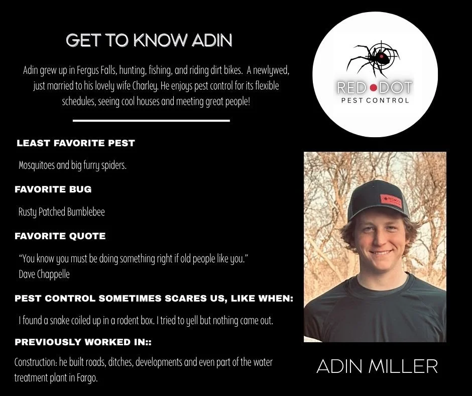 Aaron is an Otter Tail County native, growing up in Pelican Rapids and spending the last sixteen years serving the area’s pest control needs.